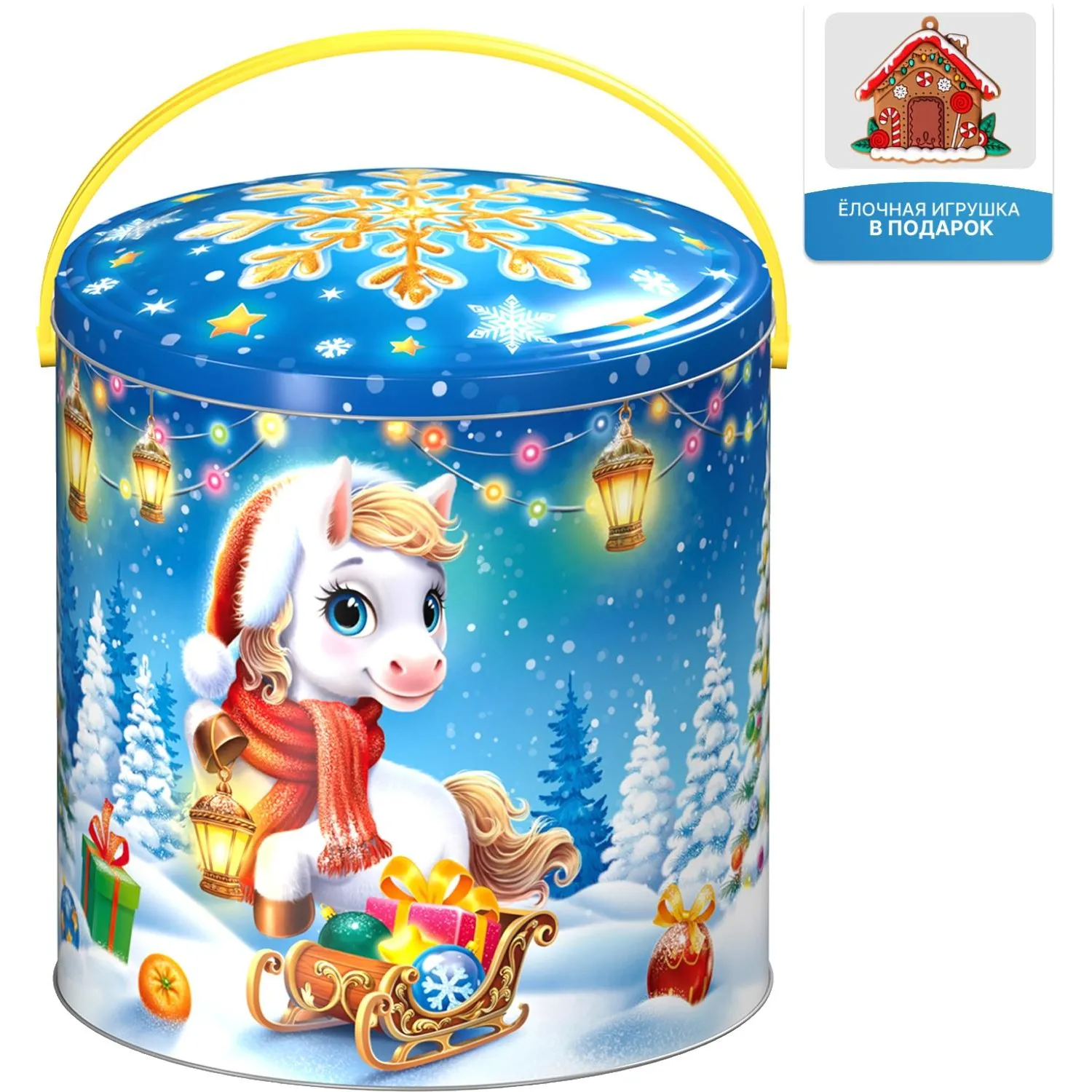 Новогодний сладкий подарок Снежный курьер Жесть 1000 грамм, K055