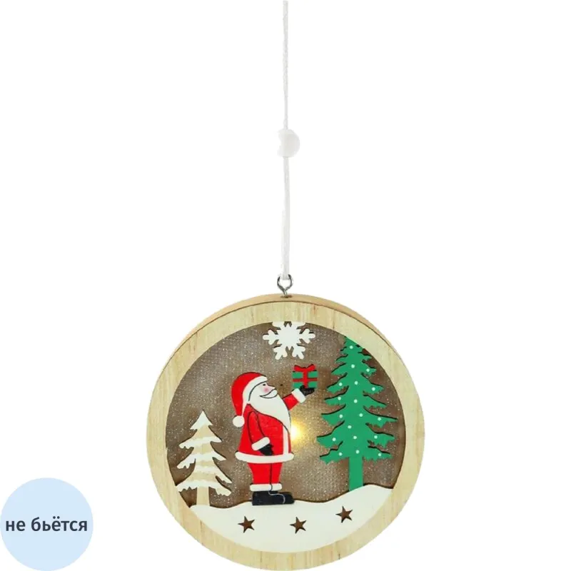 Украшение деревян подвеска с led-подсв Яркие огни,9см,батар CR 2032 НУ-3891