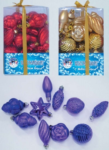Новогодний фигурных набор 24шт.8вид.блест/мат.5-6см в ПВХ 1цв.