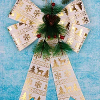 Новогоднее украшение. Ёлочный бант Новогодний, бежевый 38 см НУ-2111