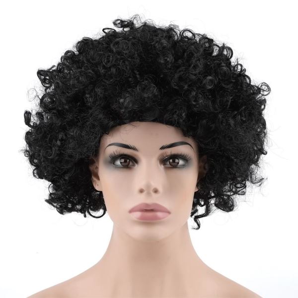 Парик клоуна для создания яркого образа на вечеринке, выступлении, дне рождения. Изготовлен из прочного полиэстера, не мнется, не требует расчесывания. Черные пушистые кудри надеваются на голову как шапочка и не спадают во время активных игр или танцев. Может использоваться взрослыми и детьми.