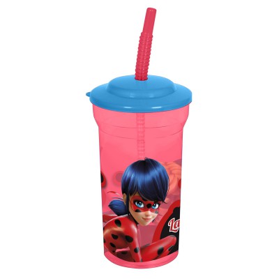 Стакан пластиковый с соломинкой и крышкой (прозрачный, 460 мл). Леди Баг