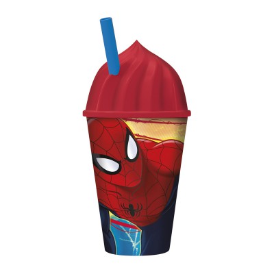Стакан пластиковый с соломинкой и объемной крышкой в виде мороженного (430 мл). Человек-паук Красная паутина