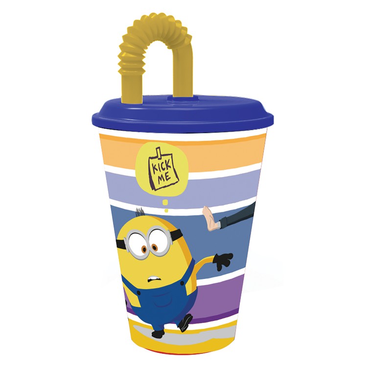 Стакан пластиковый с соломинкой и крышкой (спортивный, 430 мл). Миньоны 2