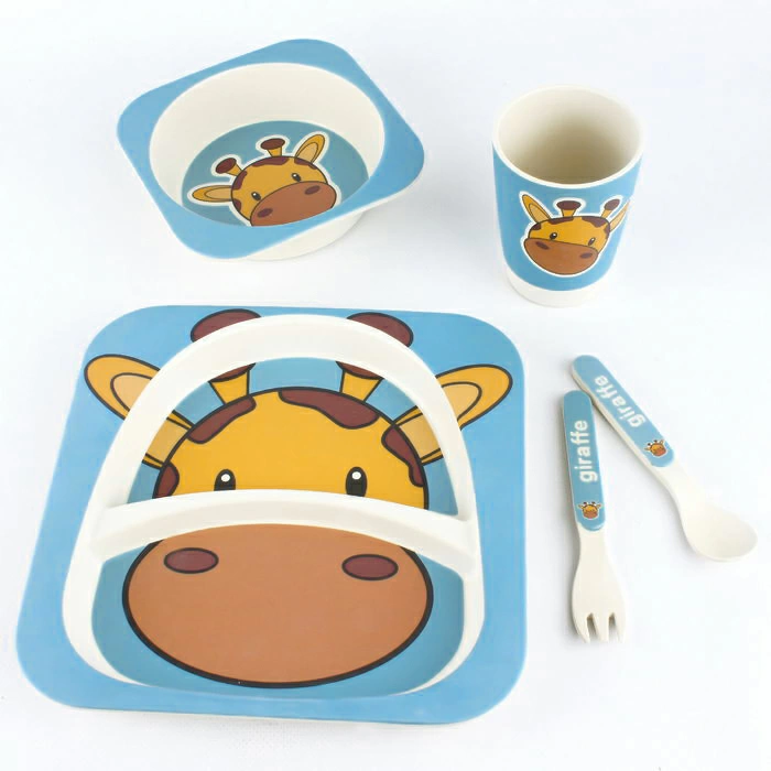 Посуда бамбуковая 5 предметов в наборе. Посуда безопасна для использования, сделана из экологически чистого бамбукового волокна с нанесением ярких красивых рисунков. Комплектность: 1. тарелка двухпорционная секционная - 21х21 см, глубина 1,5 см; 2. тарелка суповая - 14х14 см, глубина 3 см; 3. стакан - высота 9,5 см, диаметр 7 см (по верхнему краю), объем 200мл; 4. вилка; 5. ложка. ВНИМАНИЕ! Не рекомендуется использовать в микроволновой печи. Подходит для мытья в посудомоечной машине.
