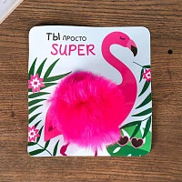 Пушистик на кольце "Розовый фламинго, ты супер" 8х8х8 см 2870355