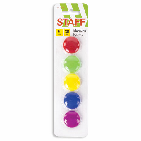 Магниты СРЕДНЕГО ДИАМЕТРА, 30 мм, НАБОР 5 штук, цвет АССОРТИ, в блистере, STAFF "Basic", 237482