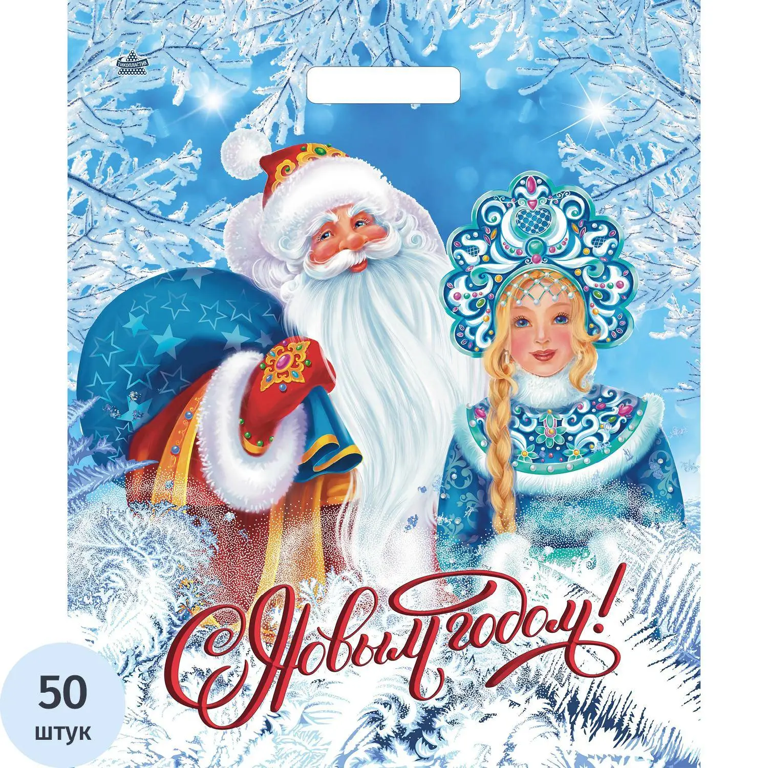 Пакет подарочный пластиковый Дед мороз и снегурочка 45х38 НГ (50шт/уп) арт.н00223916