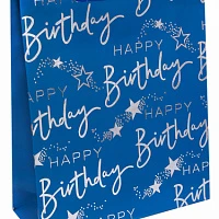 Dream cards Пакет подарочный с мат.лам. и тис фольгой Счастливого дня рождения, синий, 210г ПКП-2607