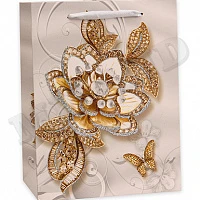 Dream cards Пакет подарочный с мат. лам. и глиттером 18х23х10см (М) Изысканные цветы, 210 г ПП-4074