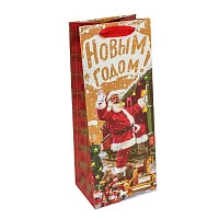 Пакет подарочный под бутылку Крафт Новогодний микс 14х35х11см арт.300367M