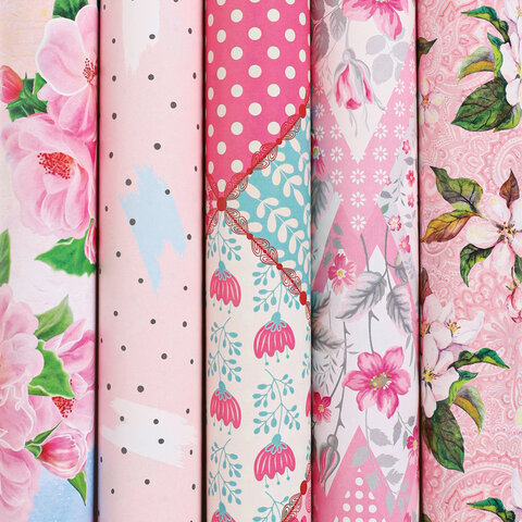 Бумага упаковочная мелованная 70х100 см ЗОЛОТАЯ СКАЗКА "Compliments", 5 дизайнов, 70 г/м2, 591589
