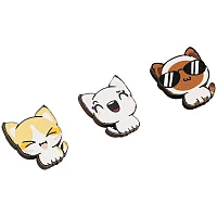 Набор деревянных значков MESHU "Funny cat", прямая УФ-печать, 3шт.