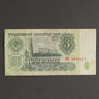 Банкнота 3 рубля СССР 1961, с файлом, б/у