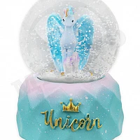 Сувенир музыкальный водяной шар Единорог,голубой Т-5895