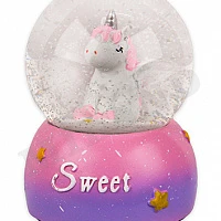 Сувенир музыкальный водяной шар Милый единорог,розовый Т-9888