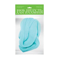 ШЕРСТЬ ДЛЯ ВАЛЯНИЯ ПОЛУТОНКАЯ (ГРЕБЕННАЯ ЛЕНТА), "СВЕТЛО-БИРЮЗОВАЯ", 50 ГР.