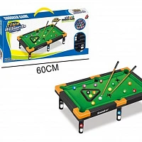 Настольная игра бильярд, в комплекте: игровой стол 47,5х26,5х3,5см., шары 16шт., треугольник, кий 2шт.