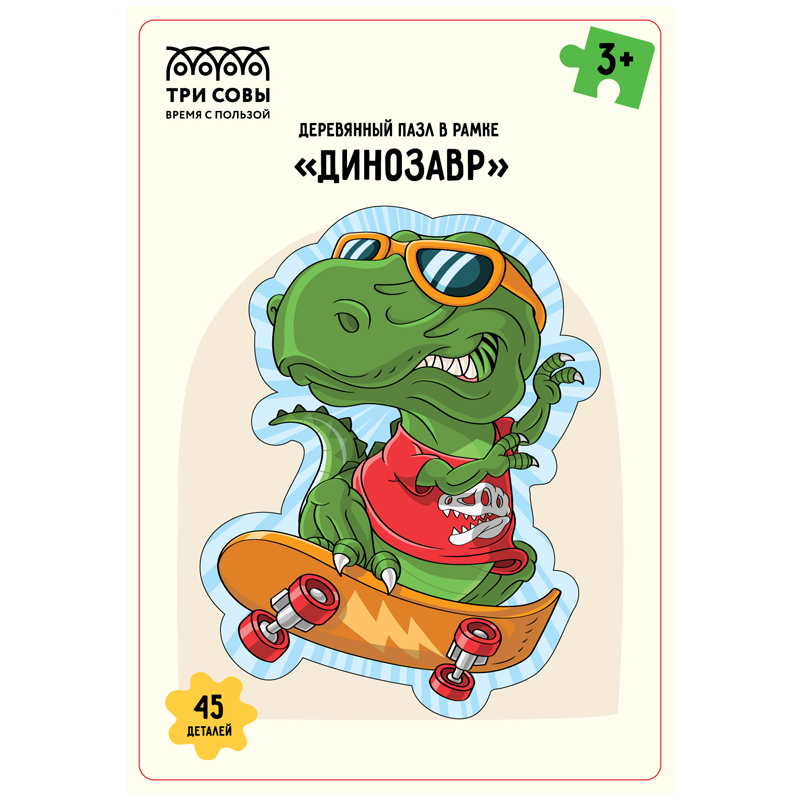 Деревянный пазл в рамке ТРИ СОВЫ "Динозавр", 45 элементов