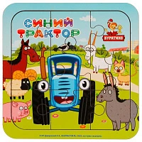 Игрушка деревянная пазл 10*10 см. СИНИЙ ТРАКТОР терм. пакет Буратино