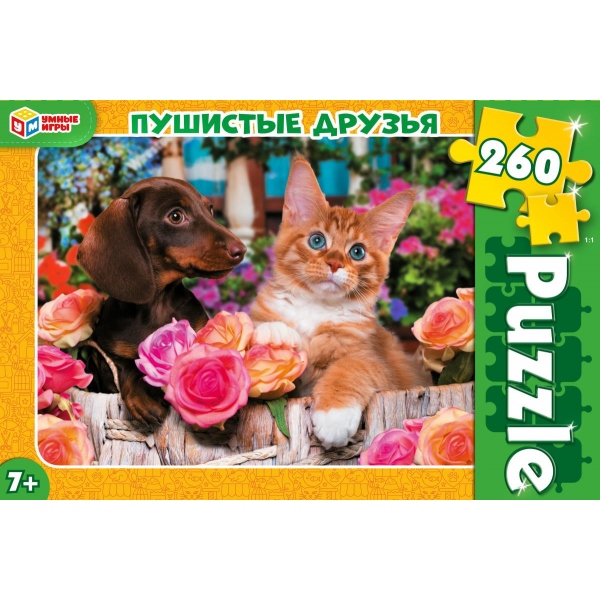 Пушистые друзья. Пазлы классические в коробке. Пазл 260 деталей. 285х190х33мм. Умные игры
