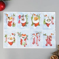 Декупажная карта "Зверята в носочках" формат А4, плотность 45г/м3