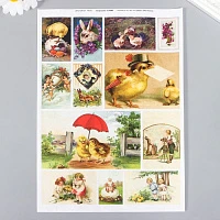 Декупажная карта "Зайки, цыпы, дети" формат А4, плотность 45г/м2