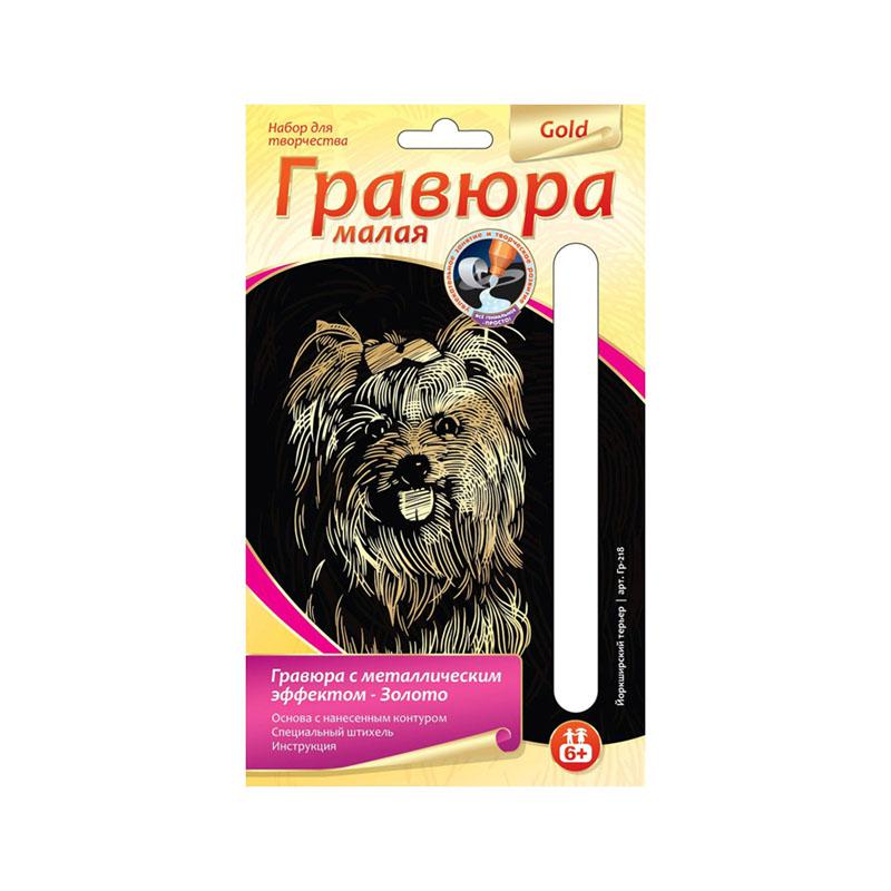 Гравюра малая с эффектом золота "Йоркширский терьер": Гр-218 штр.: 4690591000617