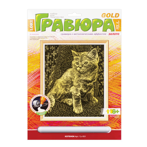 Гравюра с эффектом золота "Котёнок", 18х24 см, основа, штихель, LORI, Гр-051