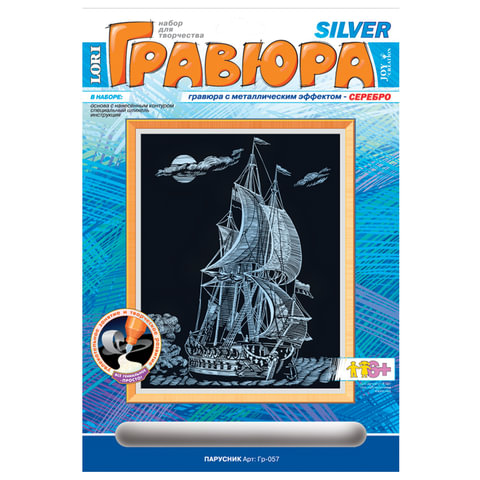 Гравюра с эффектом серебра "Парусник", 18х24 см, основа, штихель, LORI, Гр-057