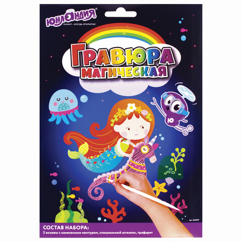 Магические гравюры ЮНЛАНДИЯ - это наборы из 2 цветных картинок-гравюр, предназначенные для детского творчества, подготовки детской руки к письму, развития координации и просто весёлого времяпровождения.