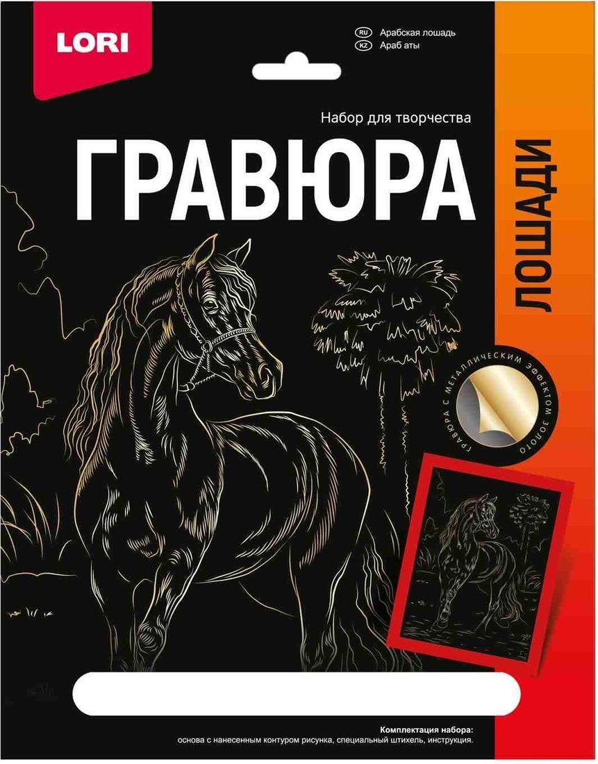 Гравюра 18х24 Арабская лошадь золото