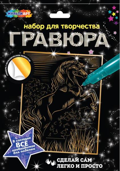 Набор для детского творчества гравюра 18*24 см, лошадь золотая МУЛЬТИ АРТ