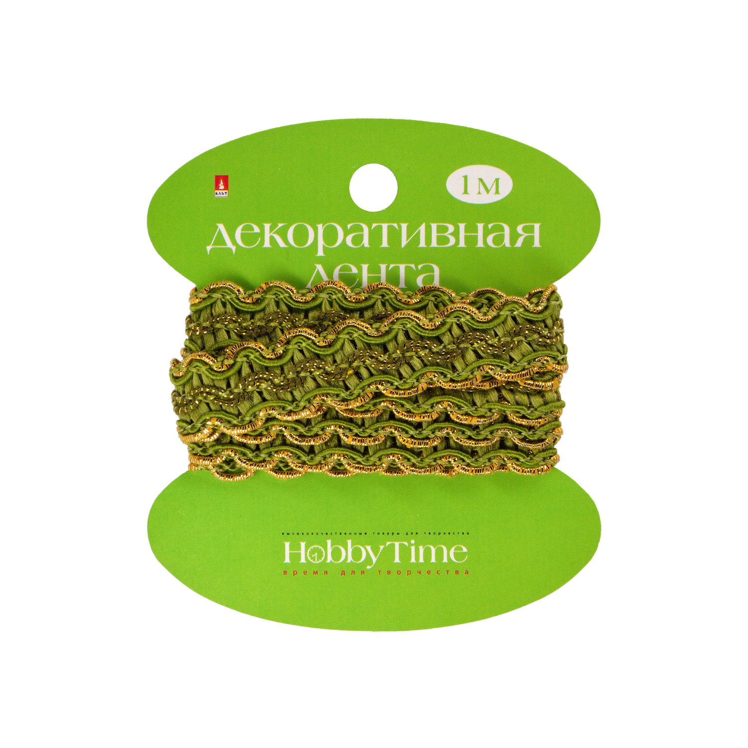 ЛЕНТА ДЕКОРАТИВНАЯ ЗЕЛЕНАЯ С ЗОЛОТОМ, ДЛИНА 1 М., 1 ВИД
