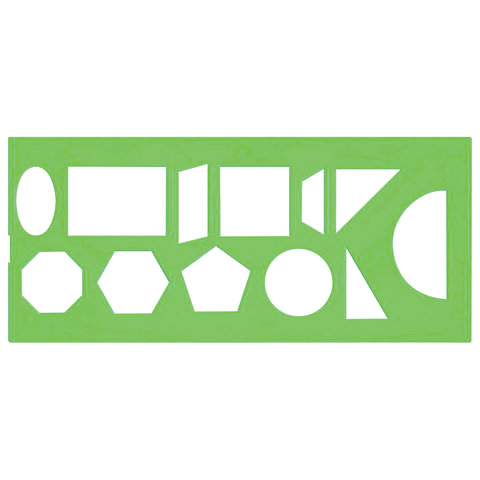 Трафарет из прочного пластика, предназначенный для черчения различных геометрических фигур. Прямоугольная форма корпуса. Трафарет содержит 12 элементов. Необходим школьникам, студентам, учителям на уроках геометрии и стереометрии.