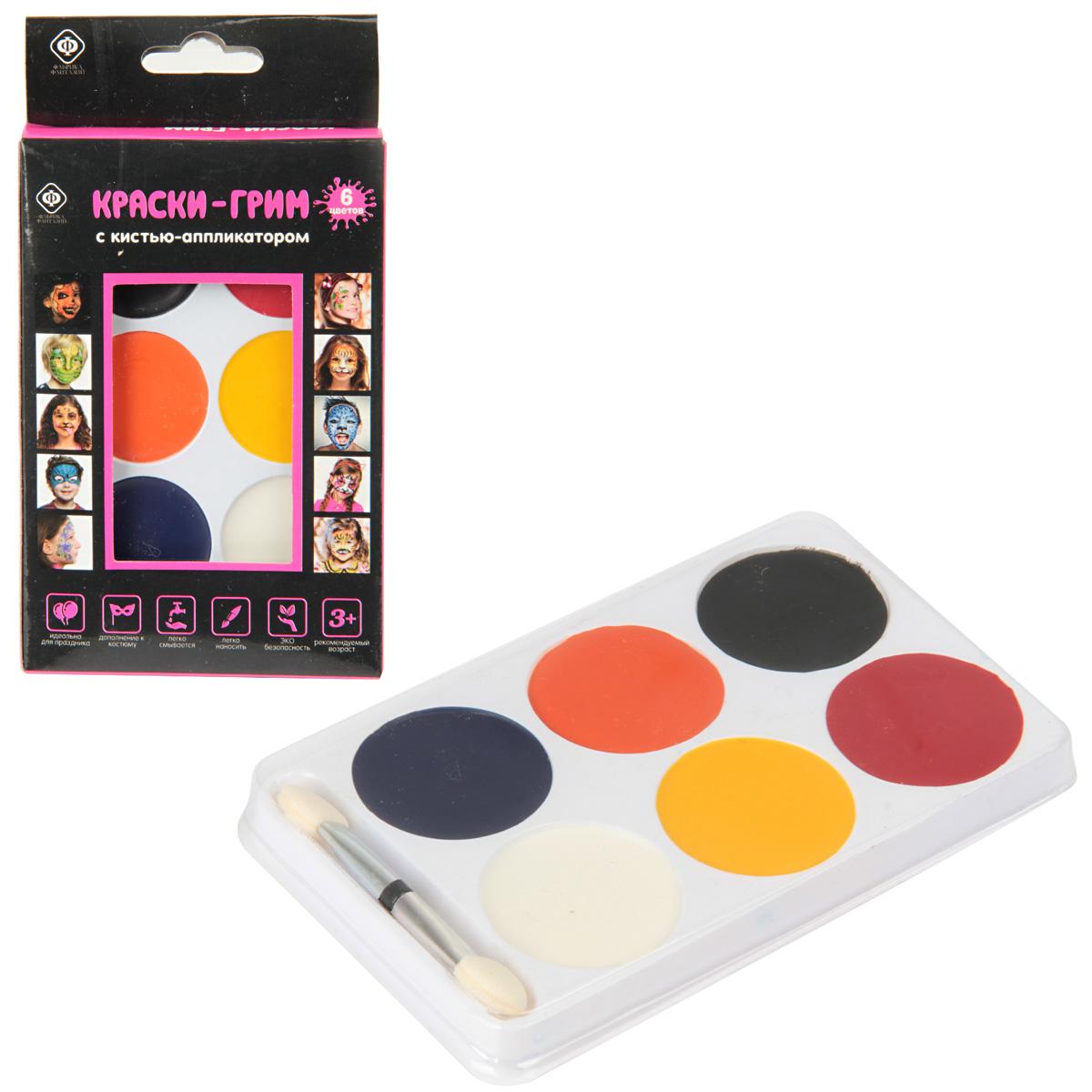 Краски-грим с кистью-аппликатором, 6 цветов. 800-57906