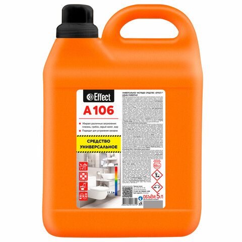 Средство EFFECT "Alfa 106" предназначено для разных поверхностей и областей применения: сантехника, сливы и водостоки, керамическая плитка, любые твердые моющиеся напольные покрытия, стены, бытовая техника. Рекомендовано для использования в гостиницах, ресторанах, офисах, на объектах пищевой промышленности, предприятиях общественного питания, в лечебно-профилактических, санаторно-курортных, детских дошкольных и других аналогичных учреждениях.Способ применения: • Раковины, ванны, унитазы, керамическая плитка: нанести средство на поверхность, при необходимости выдержать 2-5 минут, почистить и тщательно смыть. • Для уничтожения микробов и удаления стойких загрязнений: выдержать средство 30 минут и смыть водой. • Канализационные стоки: налить средство (250 мл) в водосток, оставить на ночь, смыть водой. • Напольные, настенные и другие моющиеся твердые поверхности: мыть раствором – 20 мл средства на 5 л воды. • Для кухонных плит: наносить раствор на остывшую поверхность.Меры предосторожности: будьте осторожны! Средство при попадании в глаза может вызвать необратимые последствия. Чрезвычайно токсично для водных организмов. При попадании на кожу вызывает раздражение. Использовать резиновые перчатки или щетку. При попадании на кожу промыть большим количеством воды. При попадании в глаза осторожно промыть водой в течение нескольких минут. При необходимости обратиться за медицинской помощью. Не смешивать с другими средствами бытовой химии. Перед применением опробовать средство на небольшом незаметном участке. Не использовать средство для чистки поверхностей из нержавеющей стали, акриловых ванн, окрашенных и других чувствительных к средству поверхностей. Условия хранения: хранить в плотно закрытой упаковке в прохладном, недоступном для детей месте, отдельно от пищевых продуктов. Средство замерзает, после размораживания сохраняет свои свойства. Средство и упаковку утилизировать как бытовой отход.Состав: более 5%, но менее 15% гипохлорит натрия; менее 5%: АПАВ или мыло на основе натуральных жирных кислот, НПАВ, щелочь, ароматизирующая добавка. Значение pH – 11,5.