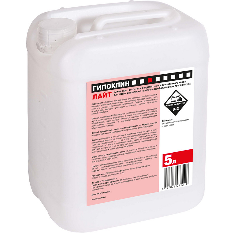 Профхим для пищ.произв щел CIP, б/пен, с дез-эф, ХЛОР Бриллиант/Гипоклин Лайт, 5л.