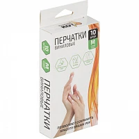 Перчатки виниловые КОМПЛЕКТ 5 пар (10 шт.) неопудренные, размер М, белые, Рыжий кот, 008341