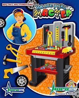 Игровой центр "мастер на все руки" очень понравится мальчишкам. Ведь им всегда так интересно что-нибудь покрутить, повертеть. В наборе есть большой стол и много инструментов. Рабочая поверхность верстака оборудована по бокам линейкой, ящичком для крепежей и держателем предметов. Под столом и на его ножках также есть полочки для хранения инструментов. Кроме того, аксессуары можно повесить на стену. Для каждого инструмента есть свое строго отведенное место. Игровой центр способствует развитию у детей пространственного мышления, воображения, логики.Комплектность:Детали для сборкиОтвертка 1шт.Пила 1шт.Молоток с гвоздодером 1шт.Гаечный ключ 1шт.Шестигранник 1шт. Плоскогубцы 1шт.