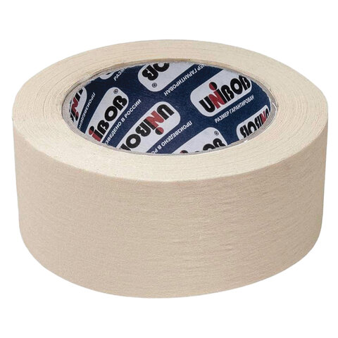 Клейкая лента малярная креппированная 50 мм х 50 м (реальная длина!), профессиональная, UNIBOB 28139