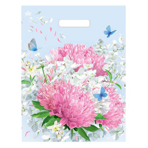 Пакет с вырубной ручкой ПВД, 40х31 см, "Нежная хризантема", 30 мкм, н00178360