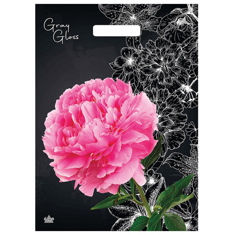 Пакет с вырубной ручкой ПВД, 43х31,5 см, "Грэй Глосс Пион", 50 мкм, н00212038