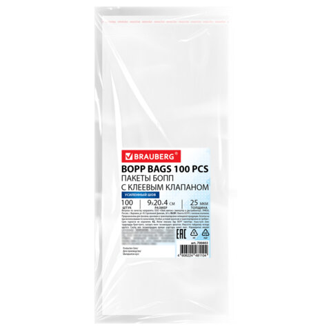 Пакеты БОПП BRAUBERG – это идеальное решение для упаковки. Они обеспечивают надежную защиту содержимого, сохраняя свежесть и привлекательный внешний вид. БОПП-упаковка BRAUBERG выполнена из прочного, прозрачного и влагостойкого полипропилена, который подчеркивает эстетику продукта и делает его более привлекательным. Материал надежно защищает содержимое от влаги и пыли, а удобный клеевой клапан обеспечивает быстрое запечатывание. Усиленный шов предотвращает разрывы и повышает долговечность упаковки.Размер: 9х20 см.Клеевой клапан: 9х4 см.Толщина: 25 мкм.Количество: 100 штук.