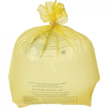Пакет для медицинских отходов кл.Б желтый 500x600х18мкм, 30л 100шт/уп