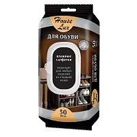 Салфетки влажные д/обуви House Lux №50 пласт.клап,д/глад.кожи,50шт/уп,72165