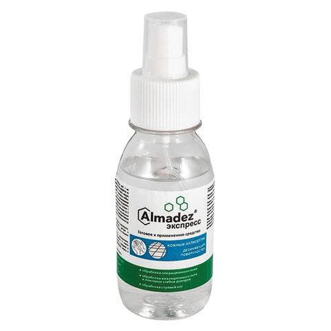 Антисептик кожный дезинфицирующий спиртосодержащий (63%) с распылителем 100 мл АЛМАДЕЗ-ЭКСПРЕСС, готовый раствор, АЭ-501