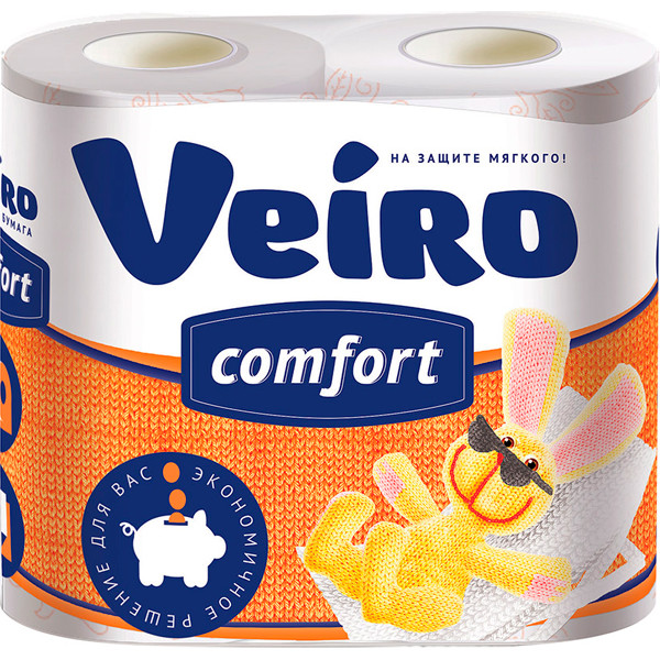 Бумага туал.Veiro 4рул. 2х-сл. Комфорт белая 5С24КОМФ 17,5м.(5С24КОМФ) *12
