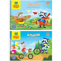 Альбом для рисования 32л., А4, на гребне Мульти-Пульти "Приключения Енота", с раскраской