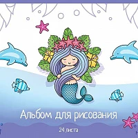 Альбом для рисования 24 л. А4 скреп. ДЕЛЬФИН И РУСАЛКА мел. карт. твин-лак